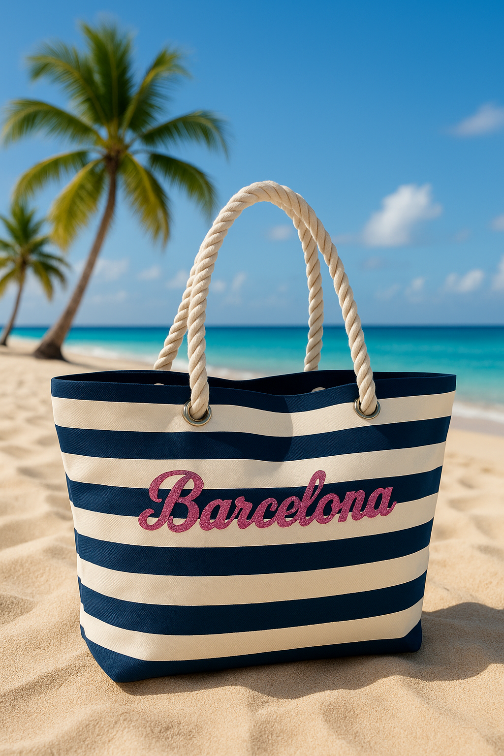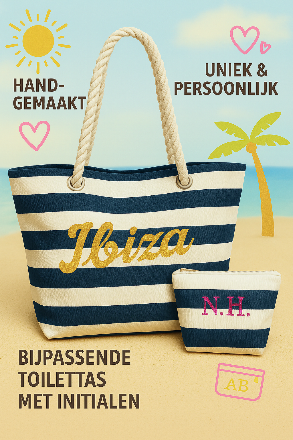 Droom jij al weg bij de gedachte aan je volgende zonvakantie? Met onze gepersonaliseerde strandtas reis je helemaal in stijl! ✨ Deze ruime katoenen tas is niet alleen een echte eyecatcher, maar ook super praktisch voor stranddagen, citytrips of zwembadbezoeken.