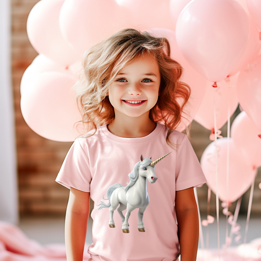 Breng een glimlach op het gezicht van jouw kleintje en voeg een vleugje magie toe aan hun kledingkast met onze prachtige Unicorn opdrukken.